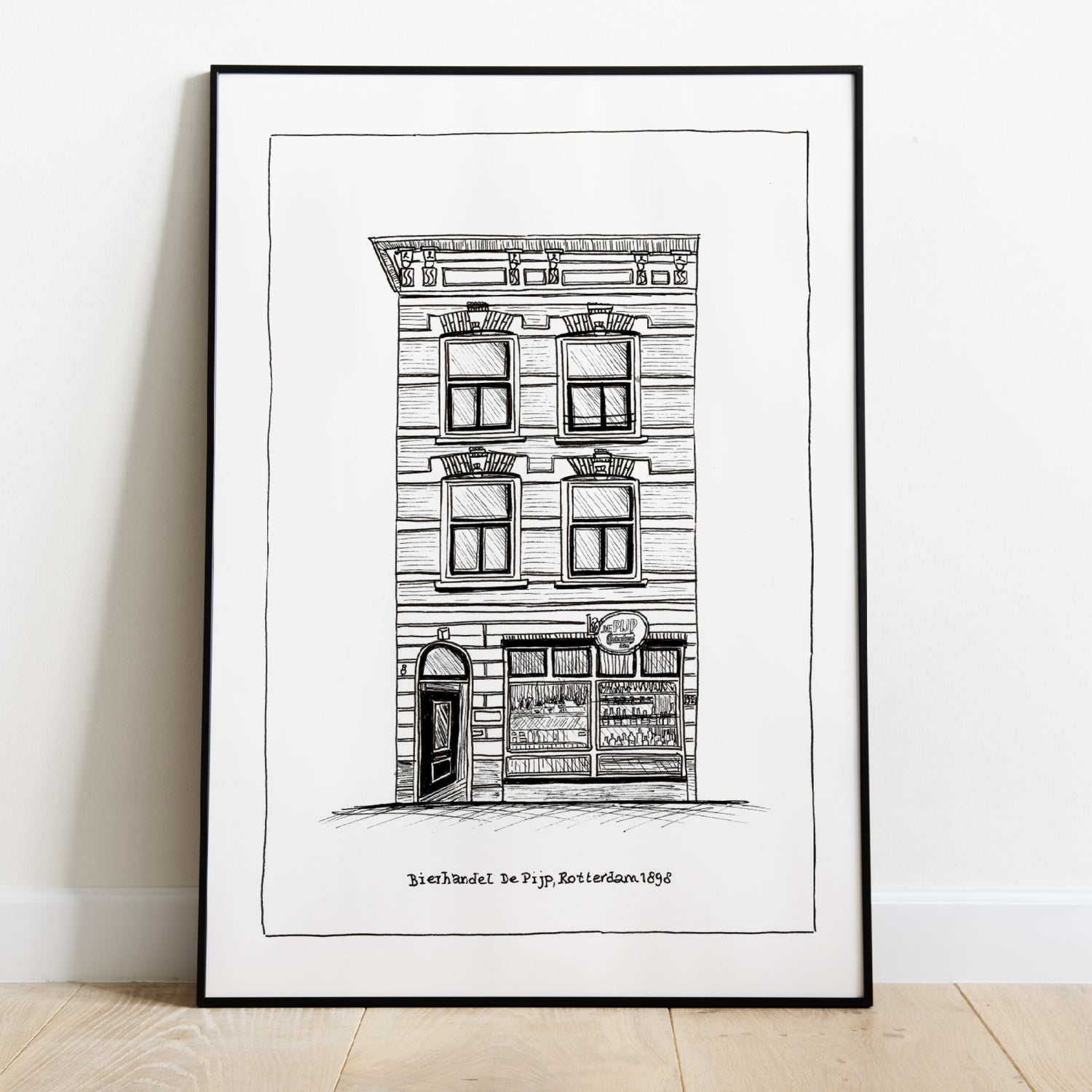 The perfect personal gift, a unique hand signed, numbered (1/50) and framed art print of Bierhandel De Pijp, the oldest café / restaurant in Rotterdam.