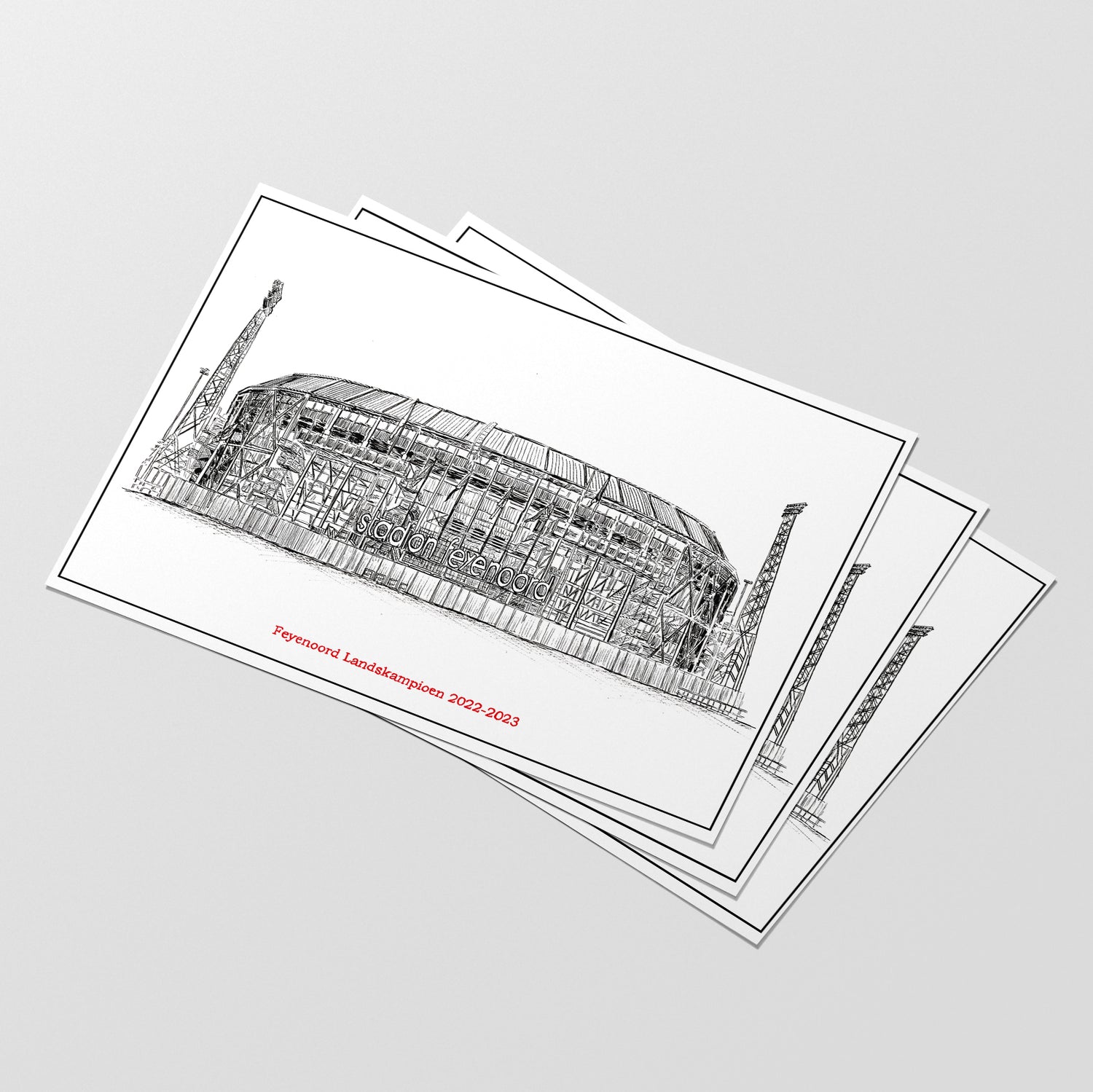 Elke artprint is gesigneerd door mij, Chris Lily James, en ik laat er slechts 100 printen. Zo heb jij voor altijd een unieke tekening van jouw mooiste Kuip aan de muur.