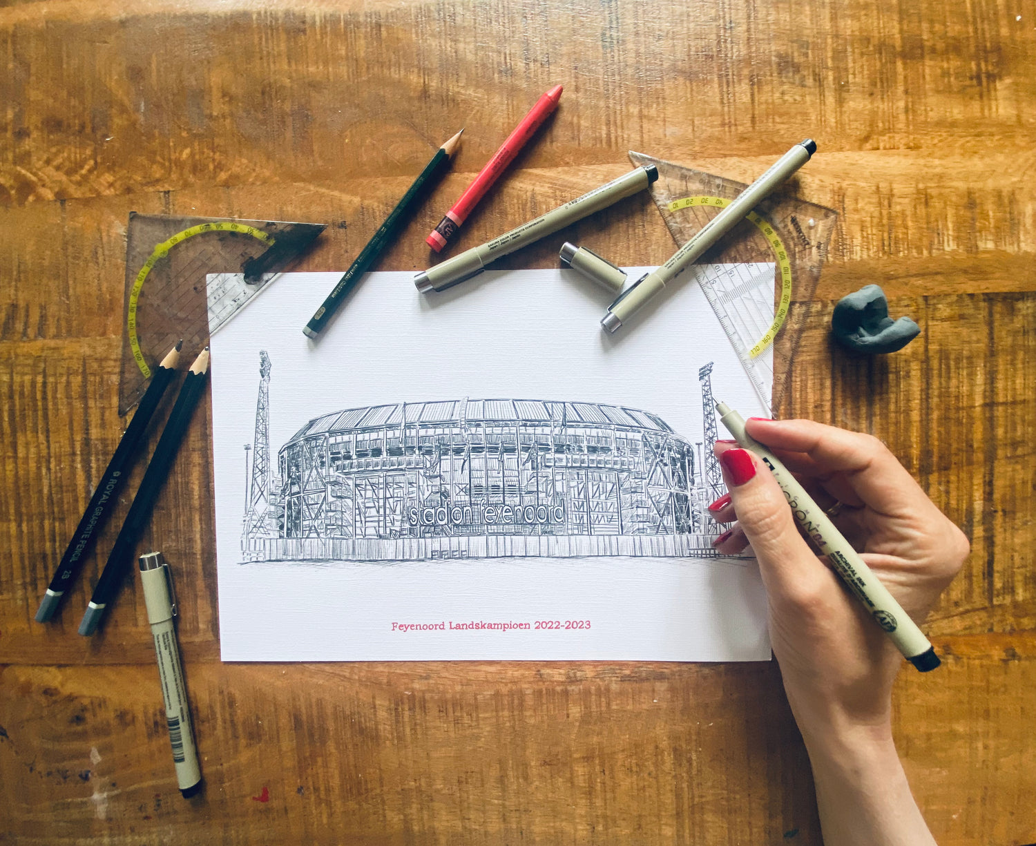Op verzoek van velen heb ik De Kuip in Rotterdam getekend. Natuurlijk ter ere van het aankomende Landskampioenschap 2022 - 2023.